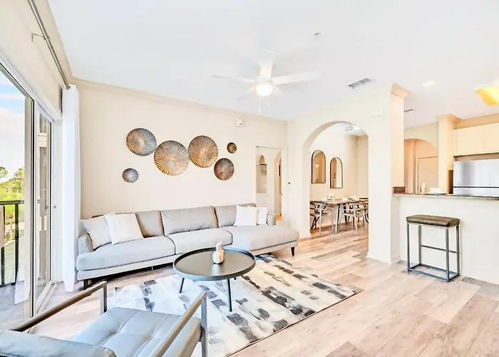 Bright 2Br Condo With Pool - Near Disney! villa beschikt over een ingerichte keuken waar gasten koffie- en theefaciliteiten, een koelkast, een oven kunnen vinden. Bright 2Br Condo With Pool - Near Disney! villa biedt toegang tot Church Street treinstation, op 80 rijminuten.